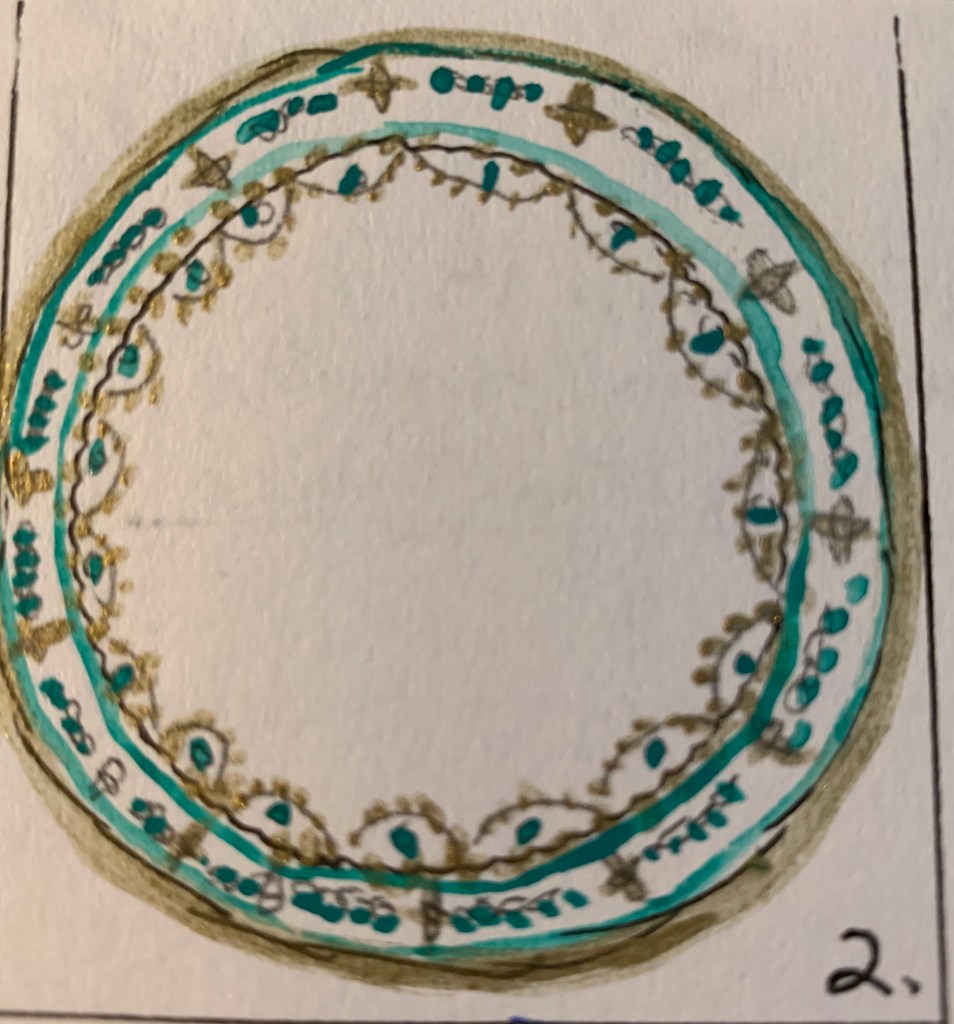 I found a possible dinnerware the Huntingtons might have used for this event. This plate could have been from Huntington Mansion on Nob Hill: a dinner plate designed by Alexandre Cabanel especially made for the Huntingtons. There is no date for this elegant Roman like plate but we do know that Mrs. Arabella Huntington got her portrait painted by this same artist, Mr. Cabanel in 1882. The dinner plate looked like a Roman or Grecian plate, the image illustrates 2 figures in robes, a man is seated receiving a plate of food from a woman. The plate was gold & white plate with a mauve colored band inside the gold rim. The plate was donated by Archer M. Huntington to the Fine Arts Museum of San Francisco/DeYoung, CA.