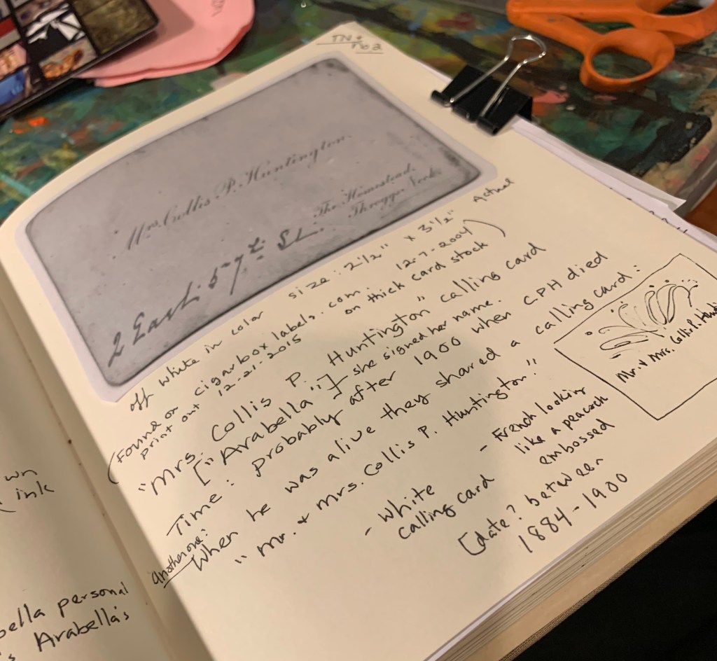 Documents at the Huntington Library, San Marino, CA: HEH Coll. HEH MS 38/11 uncat (New York House); Household receipts at the No. 2 57th St. NYC & Throgg Neck “TN” Fishmonger bill, for Mr. & Mrs. H. E. Huntington bills 1919 (Huntington Library, San Marino, CA);HEH Coll. HEH MS 53/2 (1-2) (E. Burke Hollidays Journals; HEH’s brother in law) HEH Coll. MS 19/5 MS uncat (HEH bio file) & H. E. Huntington checkbook ledgers, (100’s of Lilies of the Valley bulbs purchases for TN-Throggs Neck ) Hunt. Library, SM Calif. HEH Coll 37/1-18 Arabella Huntington Surrogate Court property papers; (Arabella’s will had 100’s of parcels of Throggs Neck in her will.) Location: Huntington Library, San Marino, CA