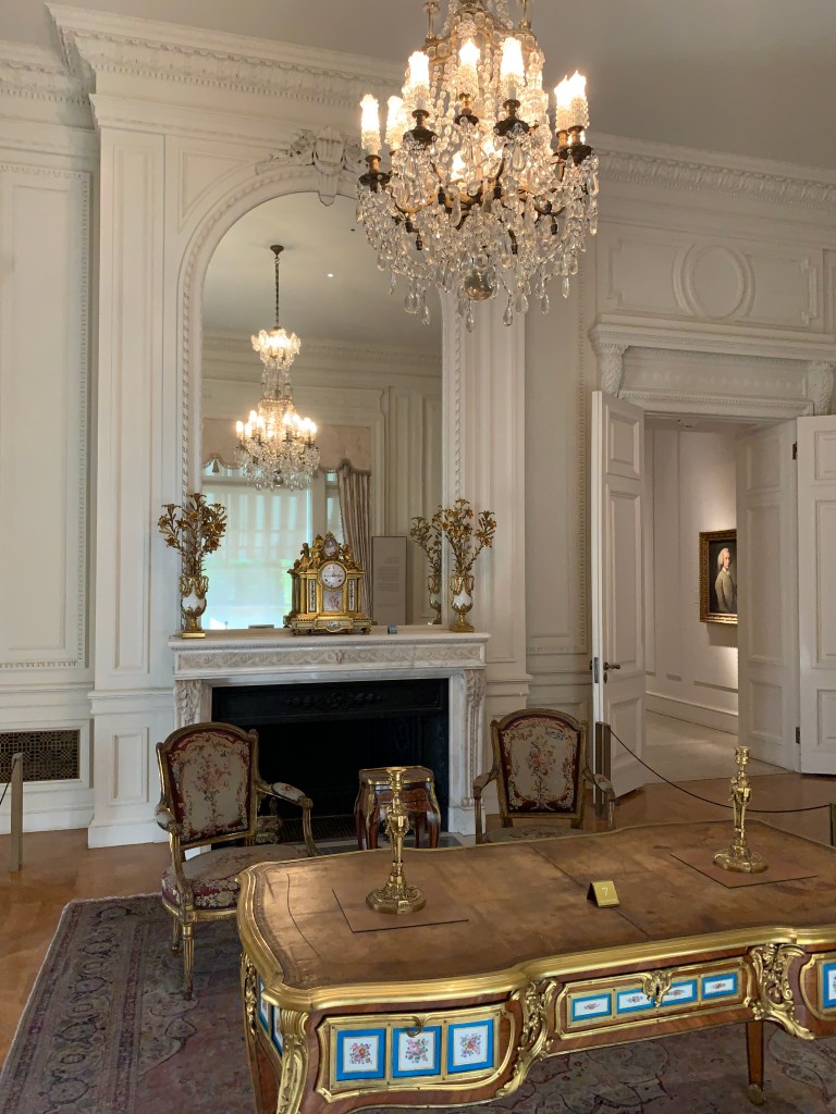 There were large Louis XIV writing table & 2 Louis XIV console tables made of wood & gilt with white marble tops were located in this room. These tables would have been useful for Miss Campbell (Mrs. Huntington’s social secretary) to compose fancy dinner menus or a letter for Mrs. Huntington or a weeks menus for up coming Houseguests.. Mrs. Huntington didn’t like to write letters; she found her handwriting to be messy & was embarrassed. She asked her friends & family to throw her letters away after they read them. In Edwardian letter writing etiquette, cross-outs were not allowed.