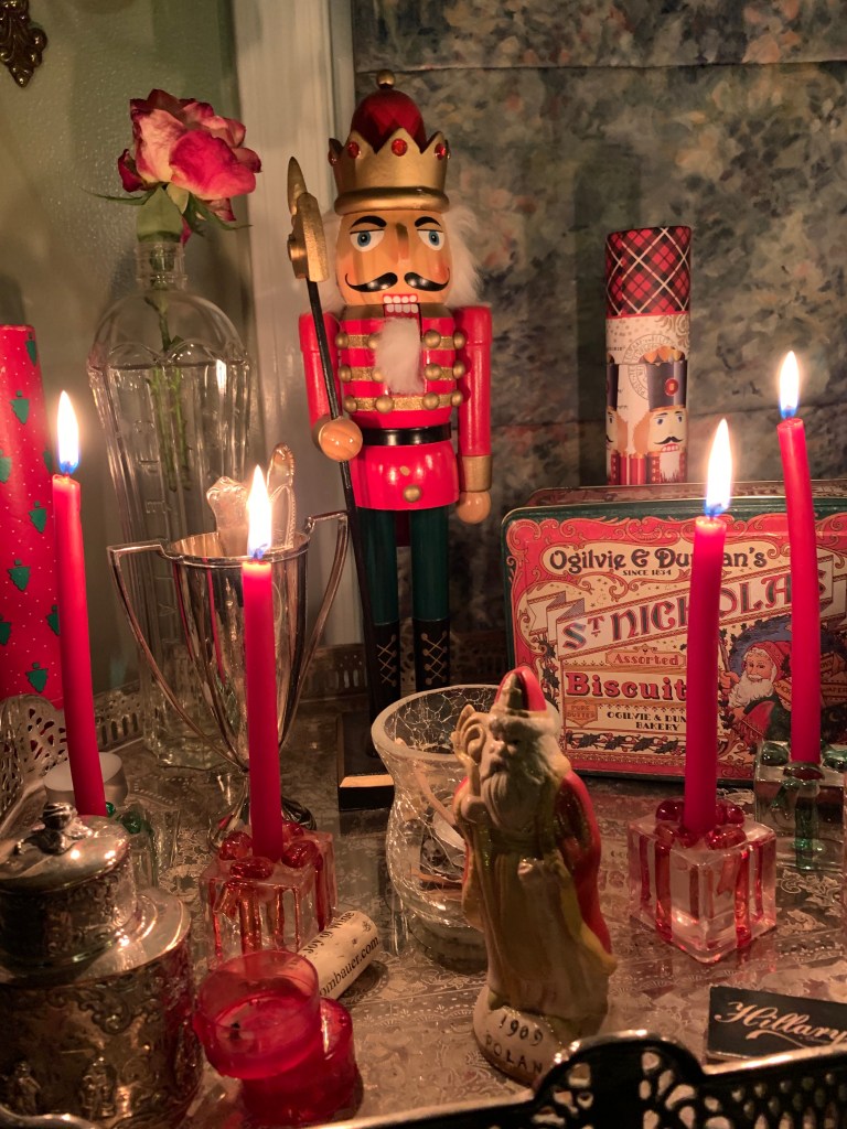 Parisian Christmas treasures for Mrs. Huntington to buy for her loved ones & wrapped up in beautiful Christmas papers and fancy French ribbon. The French have sublime packaging for gifts. Mrs. Huntington could have purchased large Christmas Creche (the Nativity Scene) in porcelain, or French perfume & Lavender & Violet soaps, French wine & champagne. Her favorite French porcelain dishware: Sevres, Havilland, & Limoges. She could buy a art book or souvenir from the Lourve Museum or tea from Maxims. For the little children friends & family: a Bishop St. Nicholas medal or statue or spicy Speculoos (St. Nicholas) French “sables” (spicy cookies) or Bishop St. Nicholas chocolates.