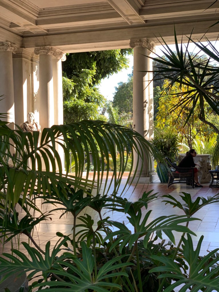 After the luncheon tea in the Huntington Mansion, they would have probably retired to the covered Loggia (rain or shine). The loggia was a favorite place for Mr. H.E. Huntington to play cards with his neighbor & friend, Mr. Patton. It was also used for tea parties & gathering, with its nice cool breezes. The east- facing Loggia has a lovely view of the San Gabriel Mountains & Huntington’s gardens. The Loggia which is a covered terracotta tiled porch. Mrs. Huntington had fragrant flower arrangements made weekly by head gardener, Mr. Hertrich & some of the staff. The vessels were filled with 100-200 fragrant roses, Lilies, orchids, & carnations from Huntington’s gardens.