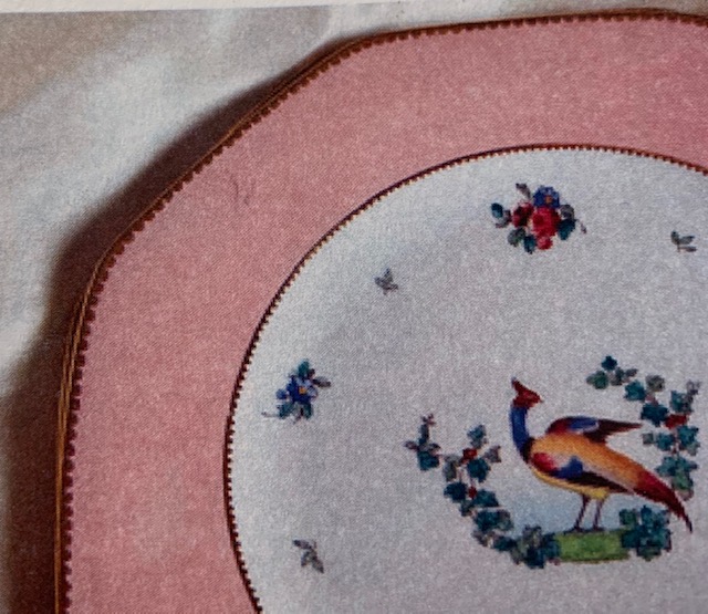Of these many plate wares at the San Marino Ranch, many were purchased at Parmalee-Dohrmann in Los Angeles, California. Om January and February in 1914,, Mr. & Mrs. Huntington purchased 3000 plates from Parmalee-Dohrmann. Mrs. Huntington had 25 different patterns in French Haviland plates alone. Some of the patterns had 150 pieces in each pattern. Mostly, her Haviland sets were gold & white scalloped plates with pink roses. She also collected French Sevres & Limoges (gold & white) plate ware. Mrs. Huntington collected many Blue Transferware dishes, which is quick a Southern tradition. She also had many patterns of Homer Laughlin plateware (founded in 1871 in West Virginia), especially the “Angelus Rose” white & gold with pink roses; which came out with a new pattern every year, but still matched all her plates.