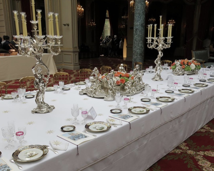 “Service a’ la Francaise” (Buffet Style) A French phrase that means serving all the dishes at once. It was a grand way to present a feast but not very practical. Think of the movie, “Marie Antoinette” (Coppola) when all the food courses came to the table at the same time. Presented by Butlers & Fancy Footmen on grand silver trays. All the food was hot; if all the courses are giving to the guests all at same time, the food would have gotten cold. So it was highly unpractical, because guests can’t eat all the food at once. At Gilded Age Balls, like NYC Delmonico’s & grand Hotels would serve food on a large buffet table, many courses at once. But serving finger foods that would last like jellied pate, ham, cheeses & so on. Guests could come to the buffet table when they wanted to eat. In today’s terms, “Buffet style”.