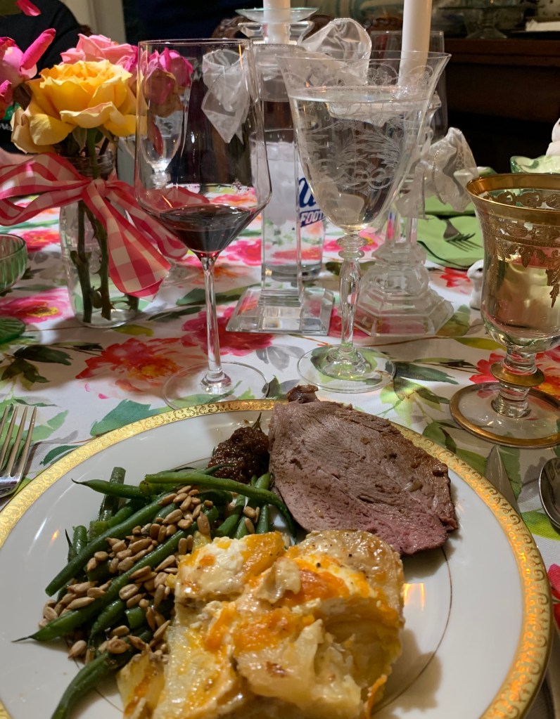 I believe that when the Huntingtons were alone or with another couple like Mr. Huntington’s sister, Carrie & Burke Holliday dinners was greatly reduced. A elegant dinner but with small portions (maybe 5-6 courses) depending on the season or French-style with 3-4 course. The oysters might be a oyster soup or New Orleans gumbo, a fish or a chicken course, a entrée or a game course, with cheese served with salad course, fresh Ranch fruit & nuts served with small fancy cakes like “petit fours” & homemade ice cream.
