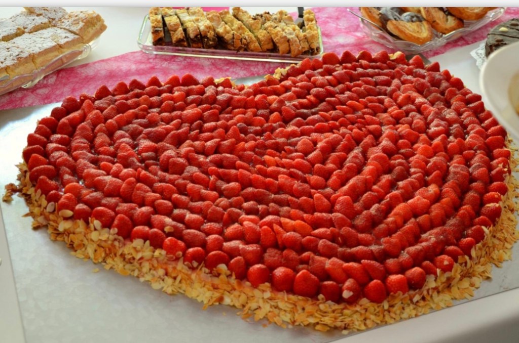 In a medium bowl, add flour & in the center eggs. Dissolve yeast in warm water & add yeast & milk to flour. Mix until dough. Melt butter add slowly to dough. Knead, place dough in a warm place for 1 hr. to rise. Then add sugar. Bake in small heart-shaped muffin pans. Top with dried cranberries or cherries. Bake 350 for 25-30 minutes. Recipe: Nancy Armitage