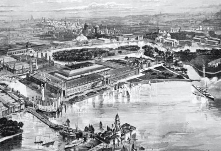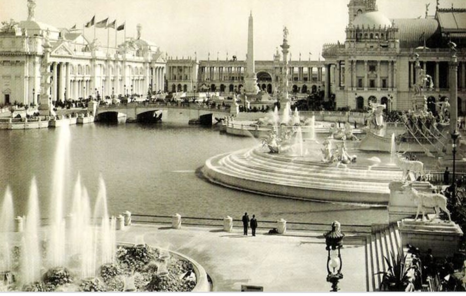 Two buildings still exist from this World’s fair in Chicago: Palace of Fine Arts Building & Art Institute of Chicago. It was a magnificent fete, they made waterways & islands that people could ride gondola boats to get to different building (like Venice, Italy). They built this massive buildings that had themes to visit.