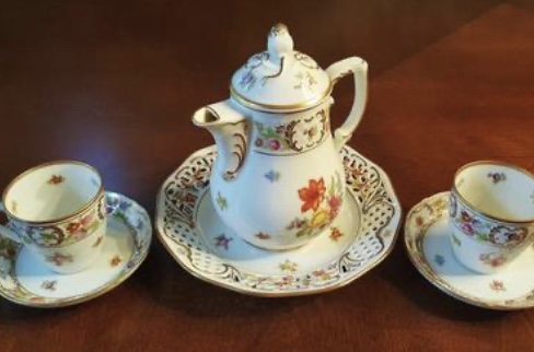 “Boudoir Set” or “Breakfast Set” (tea & coffee set fine porcelain tea cups & saucers)