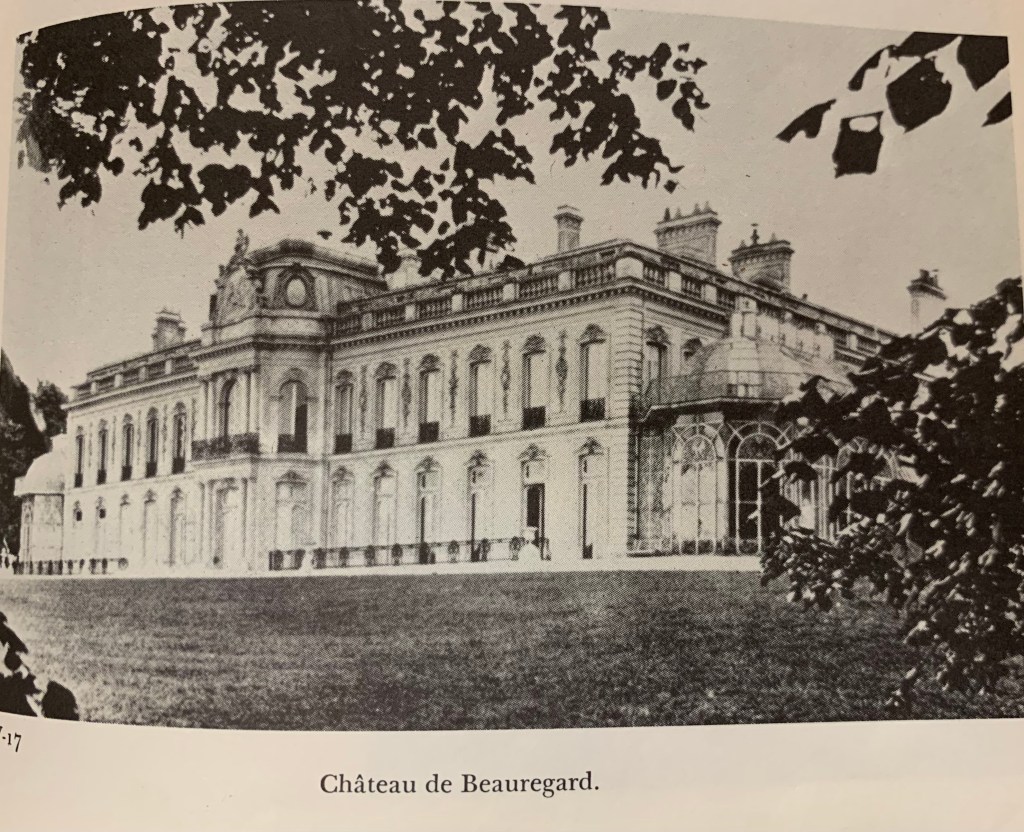 The Chateau de Beauregard had 187 Hectares of gardens (400 acres), of forests, apple orchards (20 apples trees) & nut orchards ( pecans & walnuts trees) & 20 Virginia cedar trees & 30 Pitch trees. There was the Chateau building, and another large French large U-shaped mansion, Fleurante: Flowers & many Hot houses, & 4 acres for cattle. The famous “Bel Ebat” (with its own chateau Bel Ebat) with its valuable race horse stable (that the Huntingtons could not touch like the massive French wine cellar in the basement). Also, there was also 2 hectares (4 acres) of Kitchen walled garden “La Chataigneraire”. They also had Watchman houses, Farm buildings, Orangeries, Dairy, Farmers House, Barns, & lovely formal rose gardens & such. Document: HEH Coll. HEH 12/ 23-27 (Box 7) uncat Huntington Library, San Marino, CA