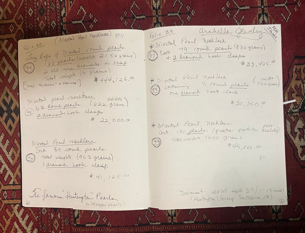 So when I was a reader at the Huntington Library (2004-2009), I was able to view Mrs. Arabella Huntington’s jewelry list of 120 items. It was quite impressive & worth $1,274,904.00. The 68th item on the list was “Platinum, large cluster brooch, 1 large faceted flat emerald in center; emerald weight 150 karats, worth $15,000.00” (estimate most likely in 1924, probably for insurance purposes). Wow, were they off on that estimate. It is not a complete list of her jewelry though. But some of her most expensive jewelry are included in my blog : Mrs. Arabella Huntington: Portraits, Tiaras, & Jewels.