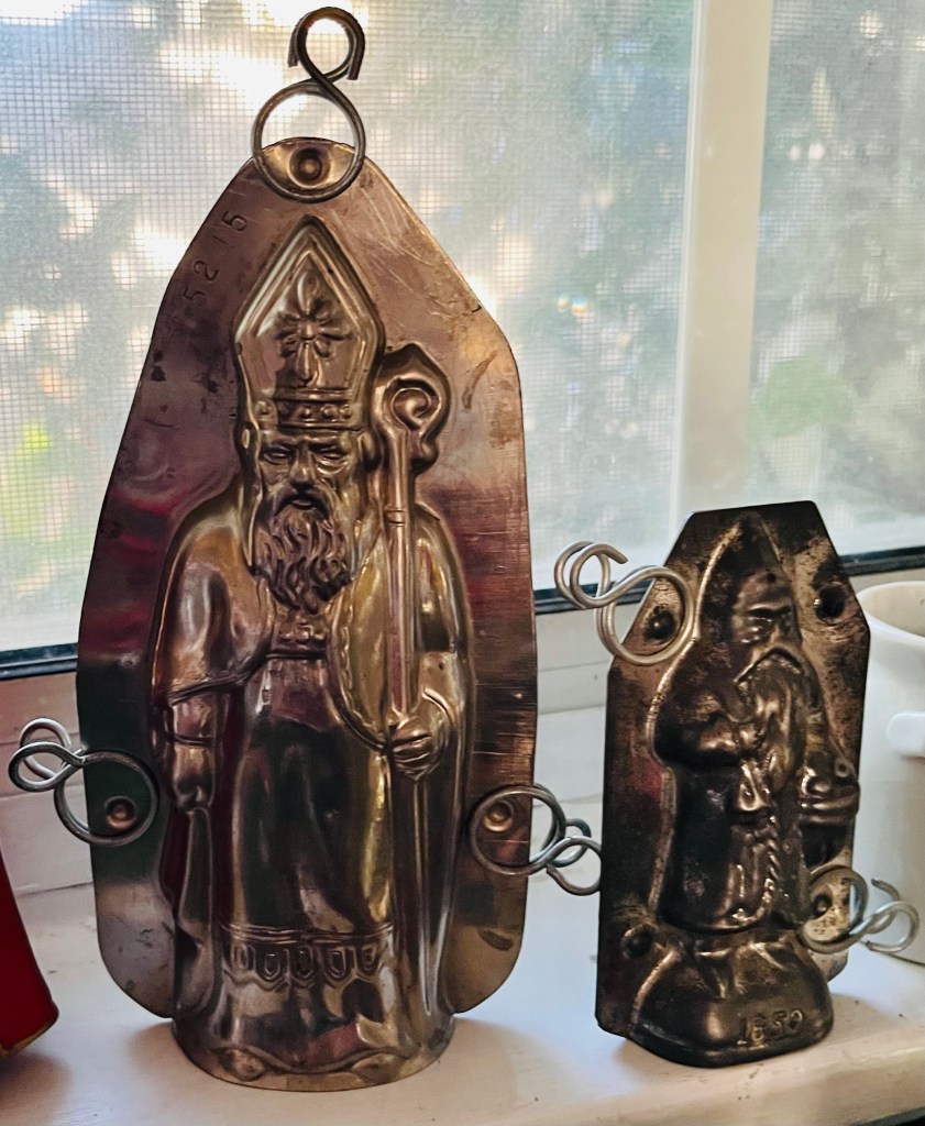 Candies: Southern Pralines, Peppermint Sticks, Huntington Mansion Honey Bars, NYC Huylers Chocolate BonBons, Jordon Almonds, , Peppermint Bonbons, Bishop St. Nicholas Chocolate Silver Mold, Sinterklass – Bishop St. Nicholas Chocolate Gold Coins.
