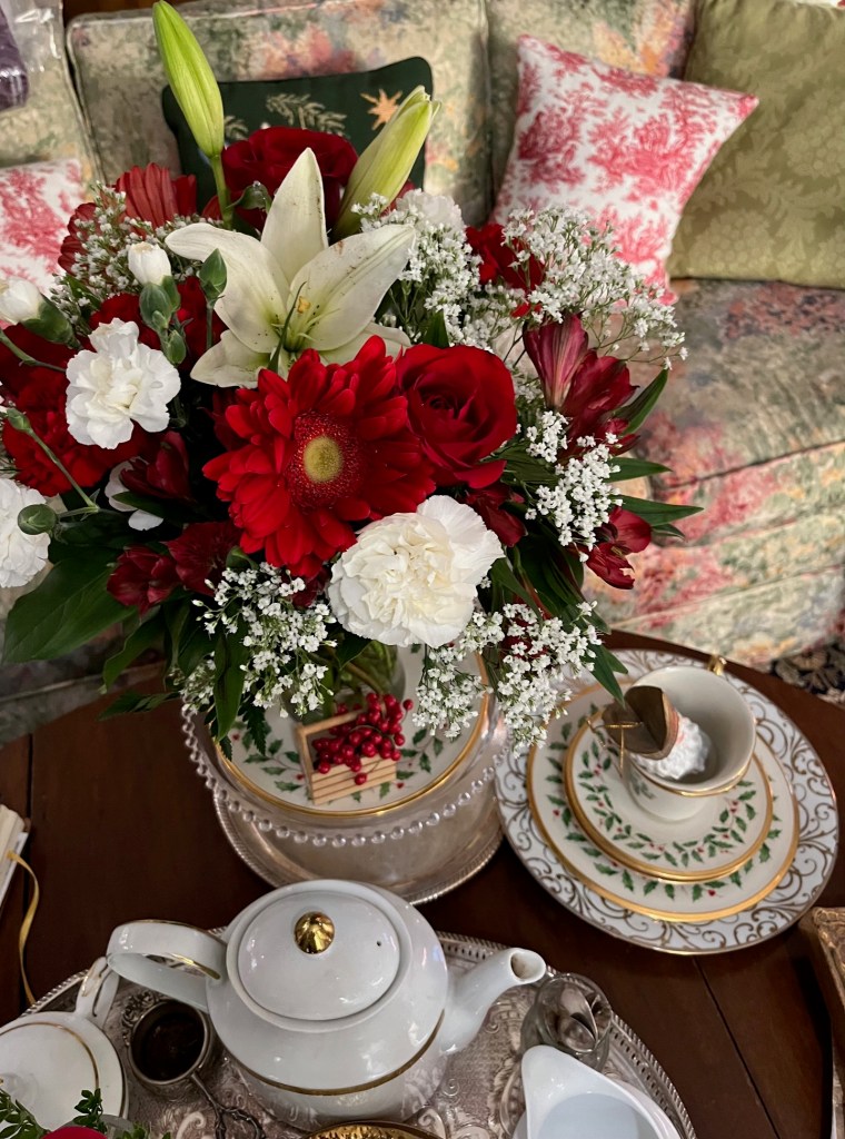 So many tea things Mrs. Arabella Huntington could have added to a stunning Christmas Tea Buffet at the Huntington Mansion on the Ranch. It could have leaned to a Southern-style tea menu: maybe Southern Whiskey Balls, Sugar & Spiced Nuts, Jordan Almonds, Louis Sherry’s fancy tins with tea cakes & Chocolate BonBons or See’s Candy Nuts & Chews, Southern Pralines, & Pecan Tart Tassies.